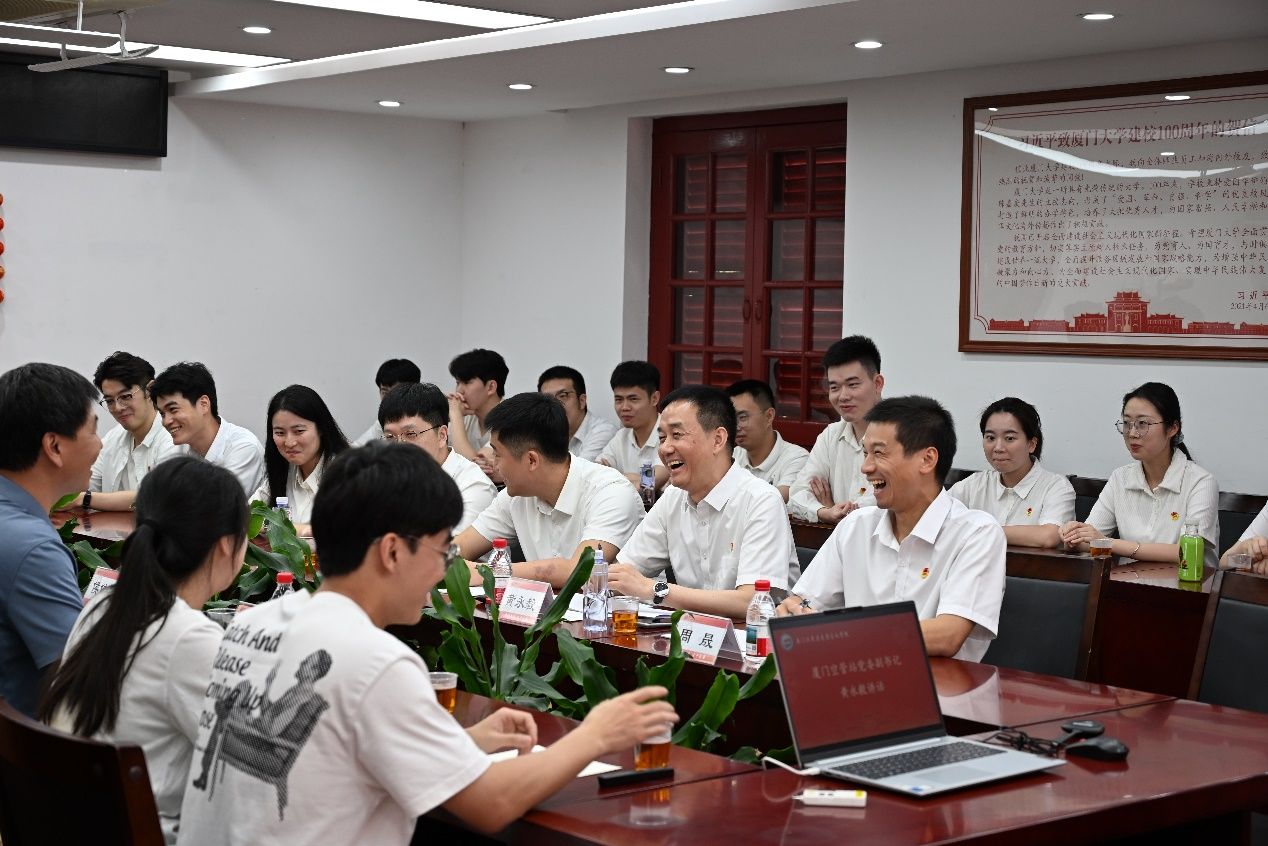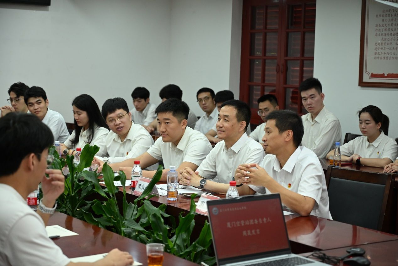 随后召开座谈会。刘晓峰对厦门空管站一行表示热烈欢迎。他详细介绍了学院近年来在学科建设、人才培养和党政干部培训等方面所取得的重要成就,强调全院师生应继续深入学习贯彻习近平总书记致厦门大学建校100周年重要核心精神,扎实推进学院内涵式发展,踔厉奋发、勇毅前行,奋力建成实力雄厚、优势突出、特色鲜明的一流马克思主义学院。