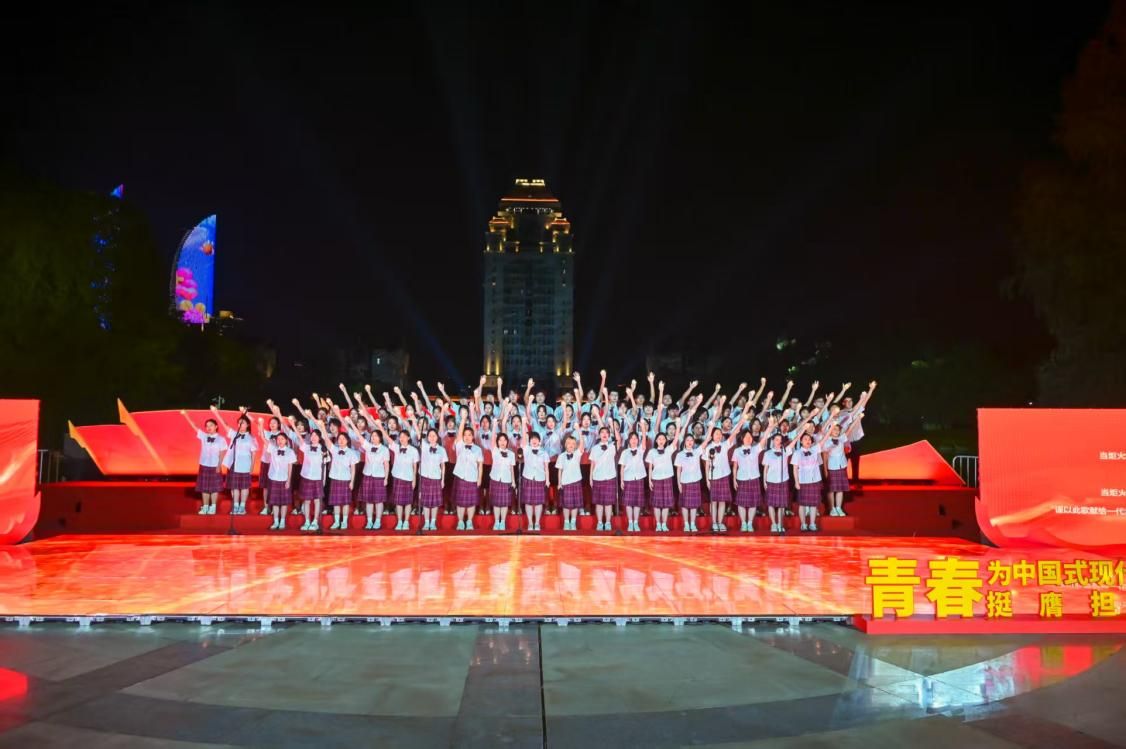 “百年后,无数个我,以热血作答时代的呼唤,新时代,新征程,有我!”5月11日晚,随着主持人铿锵有力的介绍,全体参演人员迈着坚定步伐登场,以饱满的精神面貌唱响青春的乐章。“去何方,去最高的想象,前往皓月星辰,初心不忘”“我的样子,就是中国的模样”……歌声渐起,从低吟浅唱到慷慨激昂,从婉转柔情到铿锵有力。今天,同学们以饱含深情的旋律,展现着新时代青年与祖国同呼吸、共命运的赤诚初心。未来,他们将以青春之名、奋斗之姿,在实现中国式现代化的历史新征程中,续写时代华章!