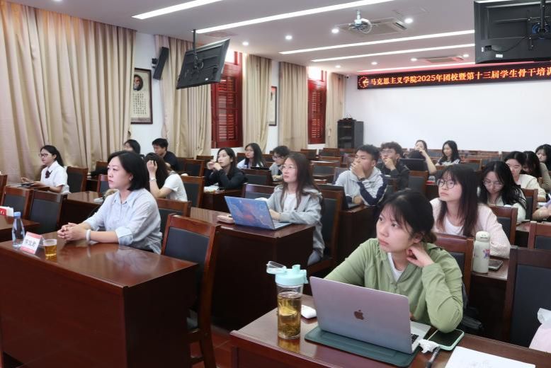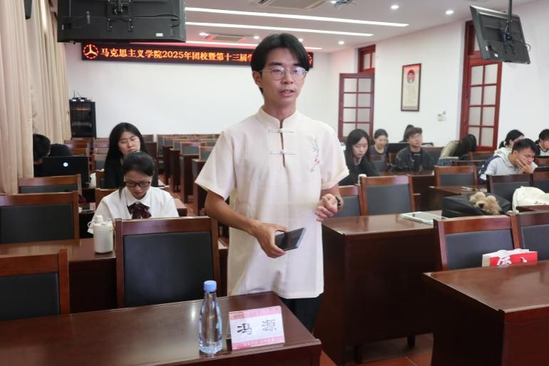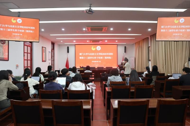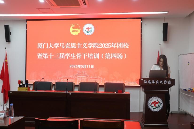 5月11日下午,厦门大学马克思主义学院2025年团校暨第十三届学生骨干培训班第四场培训在囊萤楼216会议室举行。鼓浪文学社宣传部部长,“鼓浪文兴”中国语言文学拔尖基地成员,中国语言文学系本科生冯源作题为《表达的有声与有形》的讲座。学院团委书记侯佳君出席活动,学院学生骨干参加活动。