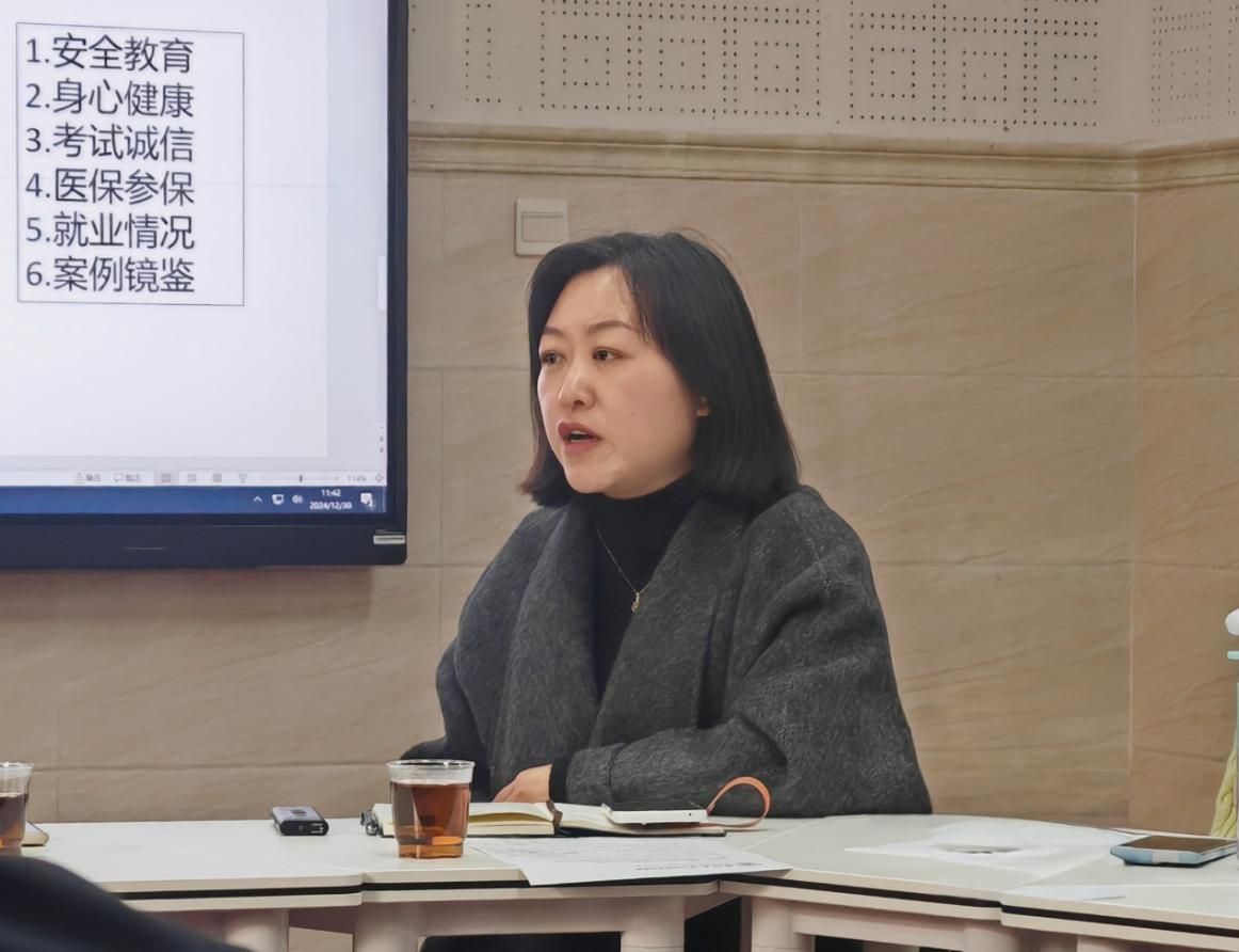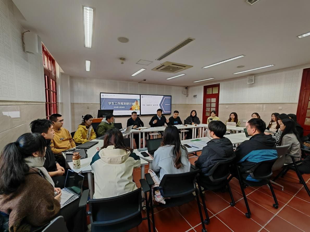 紧接着,由各部门负责人依次发言,对秋季学期以来的工作进行汇报。组织部负责人丁怡欣总结了部门品牌活动“行知读书会”的开展情况,致力于将其打造为师生学术交流的重要平台;发展部负责人尚瑾梳理了部门一学期来牵头开展的文体赛事活动及丰硕成果,并指出接下来将在学院文创产品设计上持续创新,打造更具青春气息与文化内涵的作品,为学院品牌建设提供有力支撑;联络权益部负责人曾莘妍以12·5全省志愿服务文化节和“亲师·问道”师生面对面党建沙龙为例,回顾了学院志愿品牌和服务项目的开展情况;办公室负责人张雪晴从经费报销、干部培训等方面总结反思了工作情况和不足,表示将以骨干培训为抓手为研究生会组织建设充电增能;宣传中心负责人张龙珠从公众号推文质量、宣传视频创新等方面对下一步宣传工作进行展望。