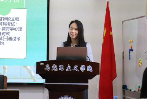 即将前往福建省高校担任思政教师的王仪介绍了福建省高校的招聘概况以及准备试讲的经验。她建议在准备试讲过程中可以准备多个主题,并多与同学和导师交流,寻求他们的建议。她鼓励我院博士生要坚定信心,保持心态,积极寻找求职机会。