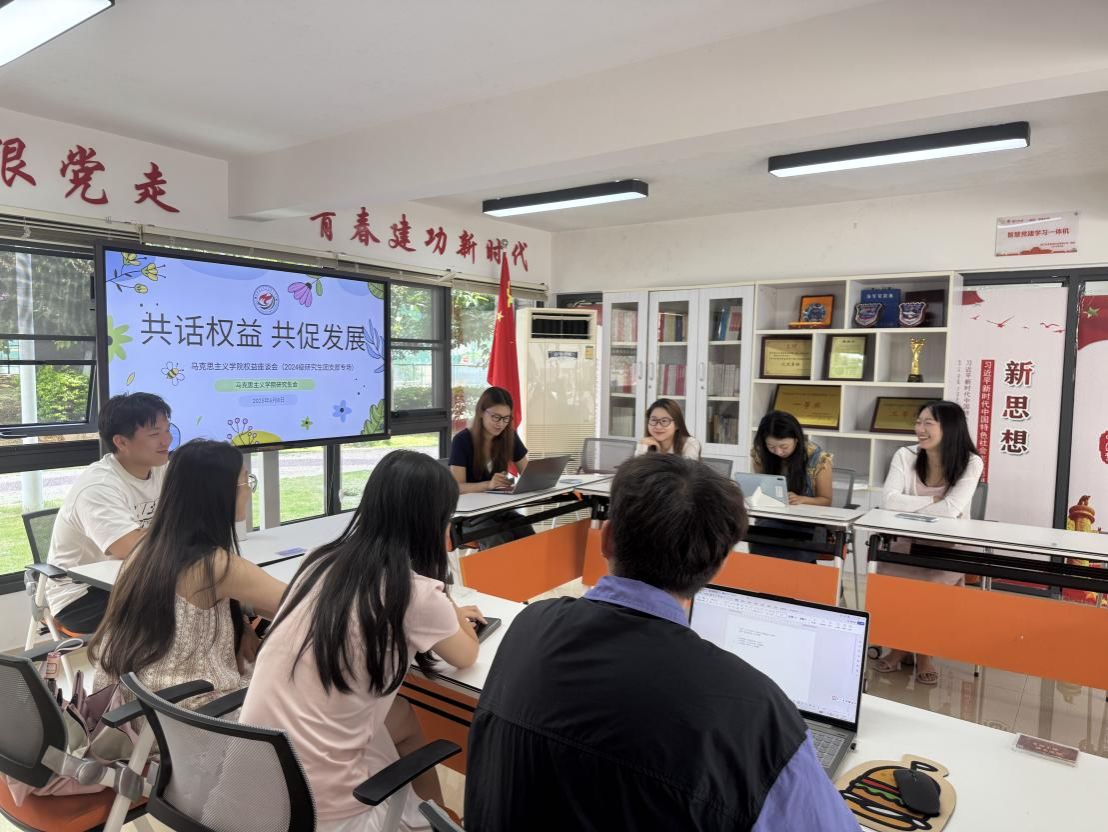 为切实保障学生权益,推进学院权益服务工作,6月8日,马克思主义学院研究生会在海韵14学习共享空间党团活动室举办“共话权益 共促发展”2024级研究生团支部专场权益座谈会。本次座谈会由学院2024级研究生团支部书记程诺主持,团支部成员与研究生会成员围绕学习、生活等方面的需求展开深入交流,共促学院建设发展。
