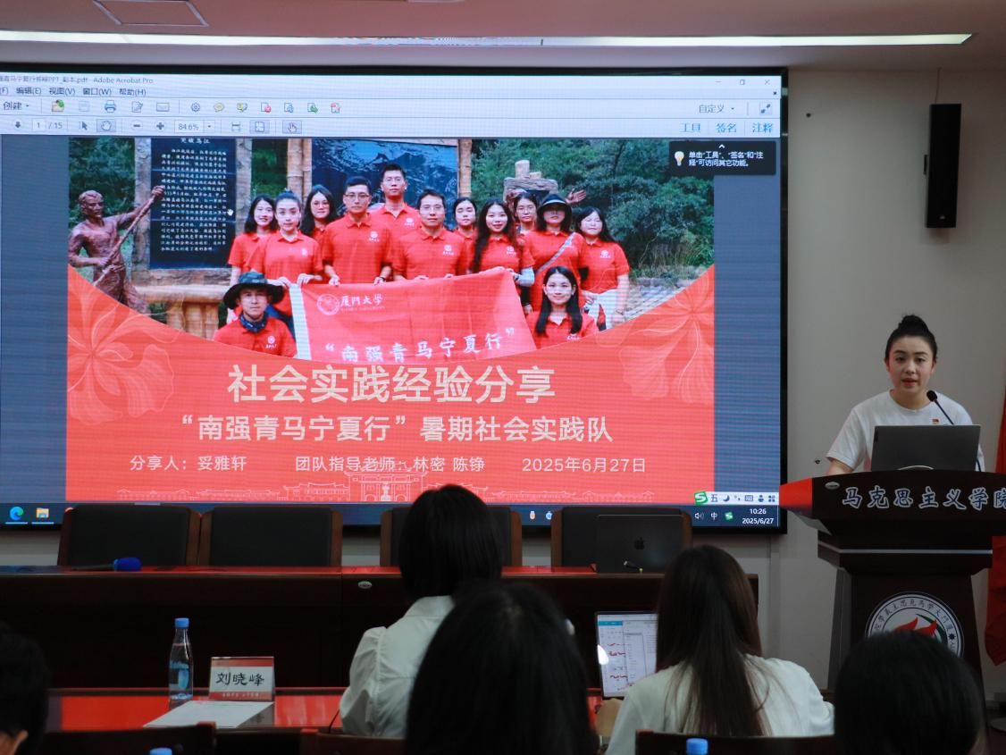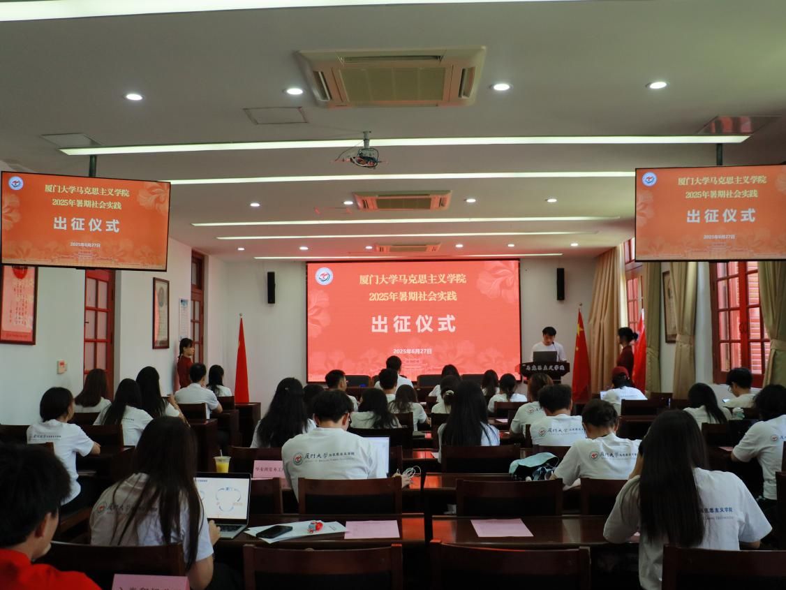 6月27日上午,厦门大学马克思主义学院2025年暑期社会实践活动出征仪式在囊萤楼216会议室举办。学院党委副书记刘晓峰、团委书记侯佳君出席会议,各实践团队代表参加会议。会议由学院研究生会执行主席祝松主持。