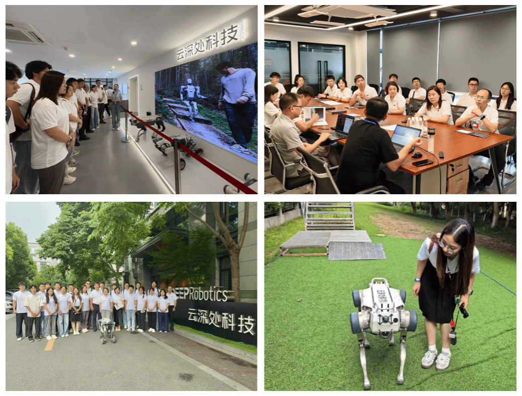 聚焦科技创新赋能企业高质量发展,实践队深入杭州“六小龙”之一的杭州云深处科技有限公司开展专题调研。在实地参观环节,实践队近距离观察多款人形及四足机器人的应用场景与核心功能,重点观摩了复杂地形适应、多模态运动及灵巧控制等方面的技术效果。在座谈交流环节,部门负责人介绍了企业的发展历程、核心技术布局及市场拓展情况,分享了机器人在工业巡检、应急救援等场景的落地案例,并围绕技术研发方向、行业发展趋势及企业人才构成等,与师生展开深入交流。