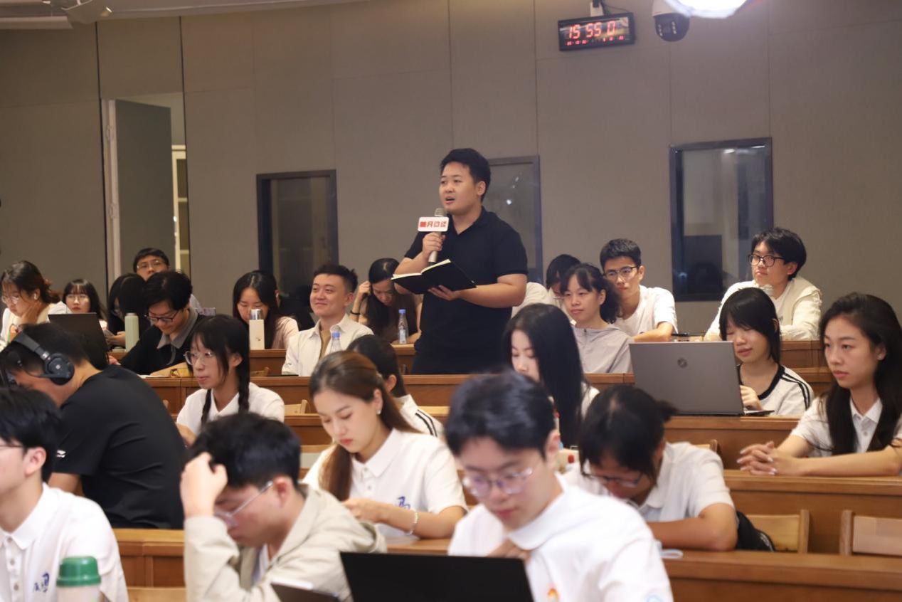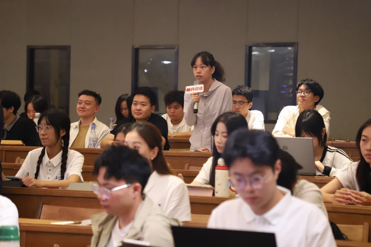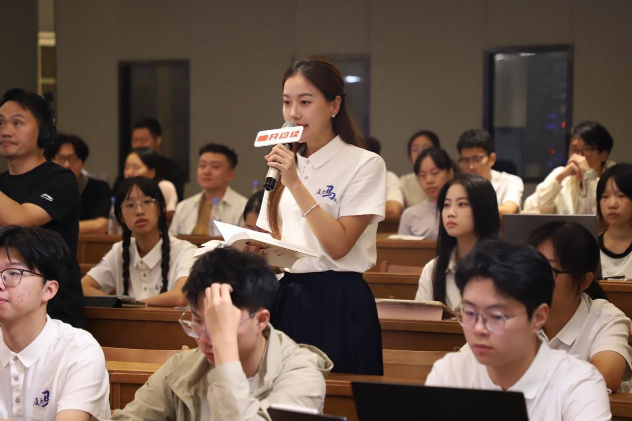 我院2025级硕士生张婧怡、2024级博士生葛尊天作为读者代表选择了第五卷的部分内容进行朗读分享。此外,我院2024级博士生龚鑫就“如何理解共建‘一带一路’成为全球深受欢迎的国际公共产品和国际合作平台”这一议题与嘉宾展开热烈讨论。