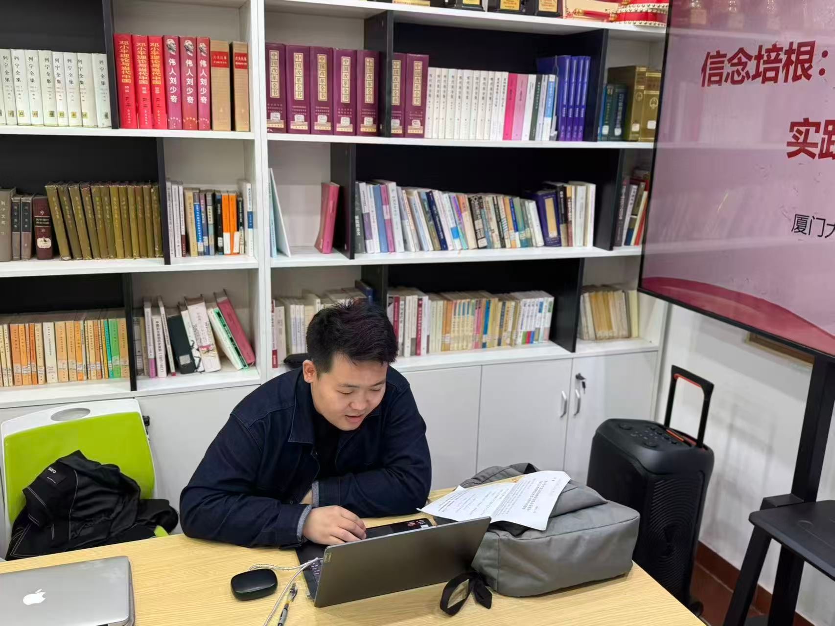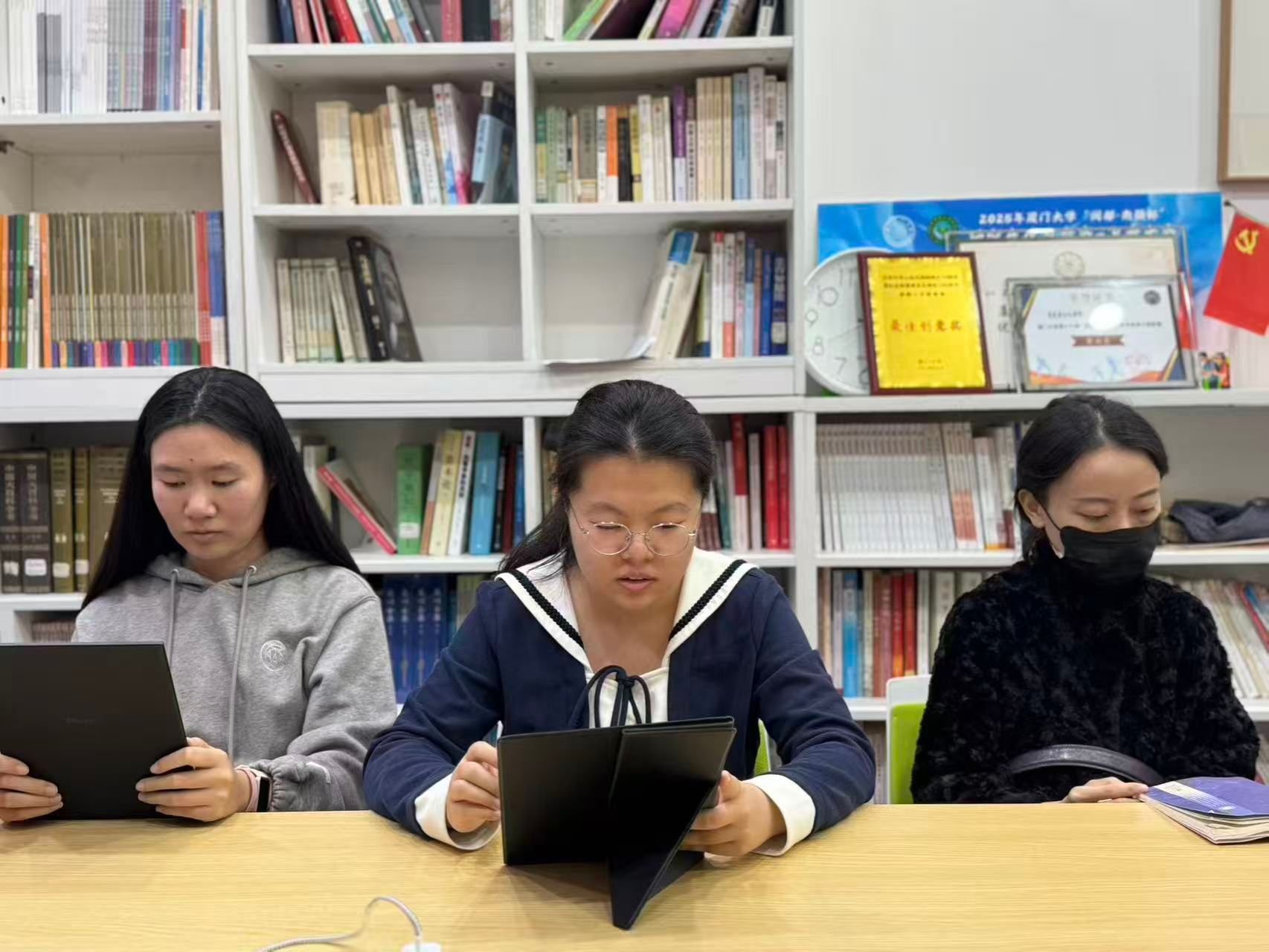 班会伊始,班长盛宁馨围绕主题,结合党的二十大和二十届四中全会精神展开系统解读。她聚焦“党的全面领导是根本保证”、“高质量发展与科技自立自强是核心动能”这两大要点,以脱贫攻坚、嫦娥探月等重大成果为佐证,结合厦门集美软件园的数字经济发展、校内基础学科研究等身边案例,将全会部署与现实实践紧密衔接。针对博士研究生的成长发展,她倡议大家立足专业深耕理论,系统研读全会精神与相关著作;结合调研实践感知国情,在城乡发展、生态建设等场景中验证理论;将学术探索与国家需求对接,在专业领域为中国式现代化贡献自己的一份力量。