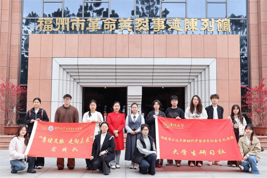 为深入学习贯彻习近平文化思想,纪念福建省第一个党组织——中共厦门大学支部成立100周年,2月26日至28日,厦门大学马克思主义学院组建“赓续文脉 走向未来”省级实践队,从厦门大学囊萤楼启程,赴福州开展为期三天的“追寻领袖足迹 激活文化创新创造活力”社会实践活动,追寻福建省早期党组织跨地域发展的壮阔历程,探究激发红色文化创新创造活力的源泉与路径。