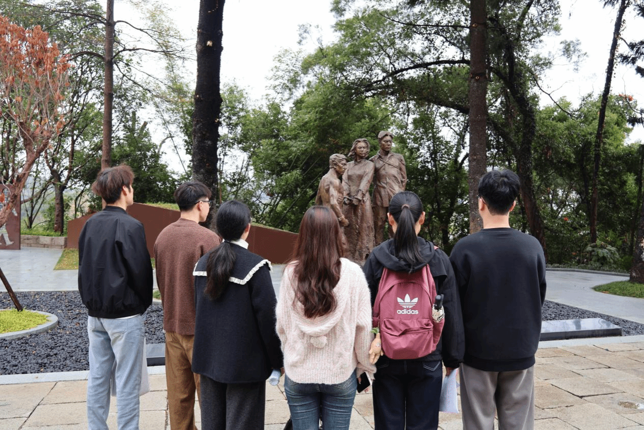 习近平总书记强调:“要讲好党的故事、革命的故事、英雄的故事”。在鸡角弄革命烈士纪念园的英名录上,队员们找到了“罗扬才”的名字。这位厦门大学支部早期领导人被捕后押解至福州,在狱中坚贞不屈、最终就义于此。“一百年前,罗扬才学长在厦门大学囊萤楼里点燃了福建革命的星星之火;一百年后,我们在这里追溯那段‘为革命而死,虽死犹荣’的峥嵘岁月。”实践队副队长陆柯茗和同伴们深刻缅怀并向烈士致敬。在文林山革命烈士陵园的革命英烈事迹陈列馆内,队员们认真聆听讲解,瞻仰英烈雕塑,观览了大量珍贵的革命文物和历史照片,切身体悟到福州地区革命志士的英勇斗争史。陵园工作人员向队员们详细讲述了罗扬才、方尔灏等烈士的革命事迹,肯定了实践队“从起点到终点”的红色寻访足迹,鼓舞同学们沿着先辈们的足迹,将小我融入大我,将所学贡献国家。