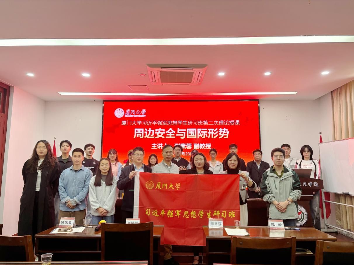 为帮助青年学子深刻把握全球局势演变逻辑,自觉肩负起新时代强国强军的使命担当,3月23日,厦门大学习近平强军思想学生研习班特邀马克思主义学院军事教研室主任谢素蓉副教授在囊萤楼216会议室开展第二次理论授课。马克思主义学院党委副书记张随刚、人民武装部张彬老师出席会议。马克思主义学院团委书记侯佳君主持会议,研习班第二期学员参加学习。