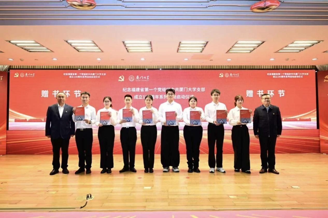 2月26日上午,中共厦门大学支部成立100周年系列活动正式启动,学院组织师生代表参与启动仪式。学院2025级硕士生陈逸桐、曾仙宝作为代表接受赠书,在庄重仪式中感悟信仰力量。