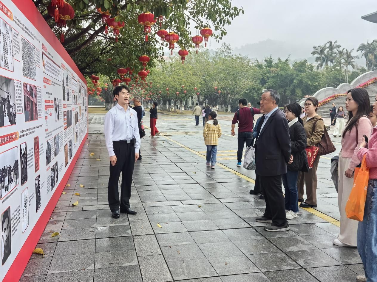 在“囊萤之光耀八闽 百年初心启新程”主题展板前,2025级硕士生、学生党支部书记张铭担任讲解员,为师生与游客系统讲述厦大党组织的发展历程,引领大家在历史回望中重温初心使命。