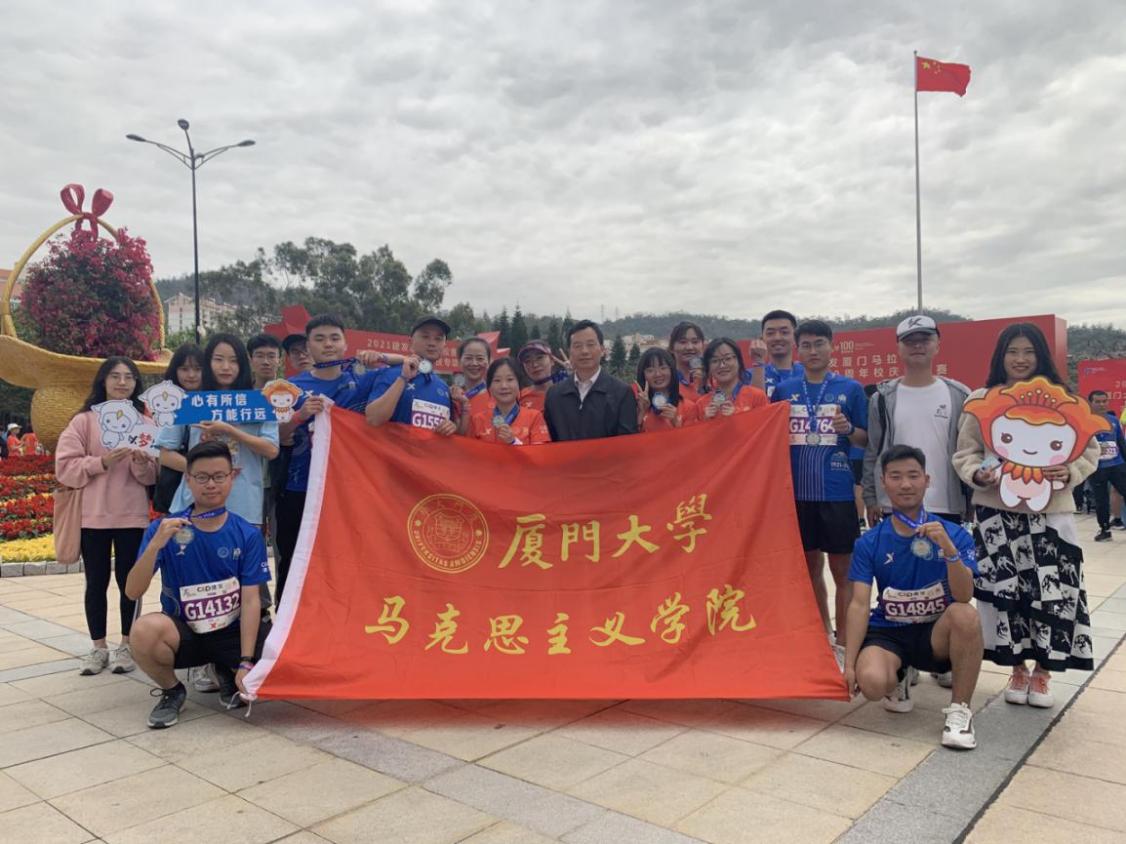 相聚在终点线的同学们领取属于自己的完赛奖牌,定格于镜头之中,分享着这份独家体验与超越自我的喜悦。恰逢建党百年和建校百年,参赛选手用奔跑致敬母校,充分展现了马院学子的风采,用行动将厦大精神融入日常生活和学习中。