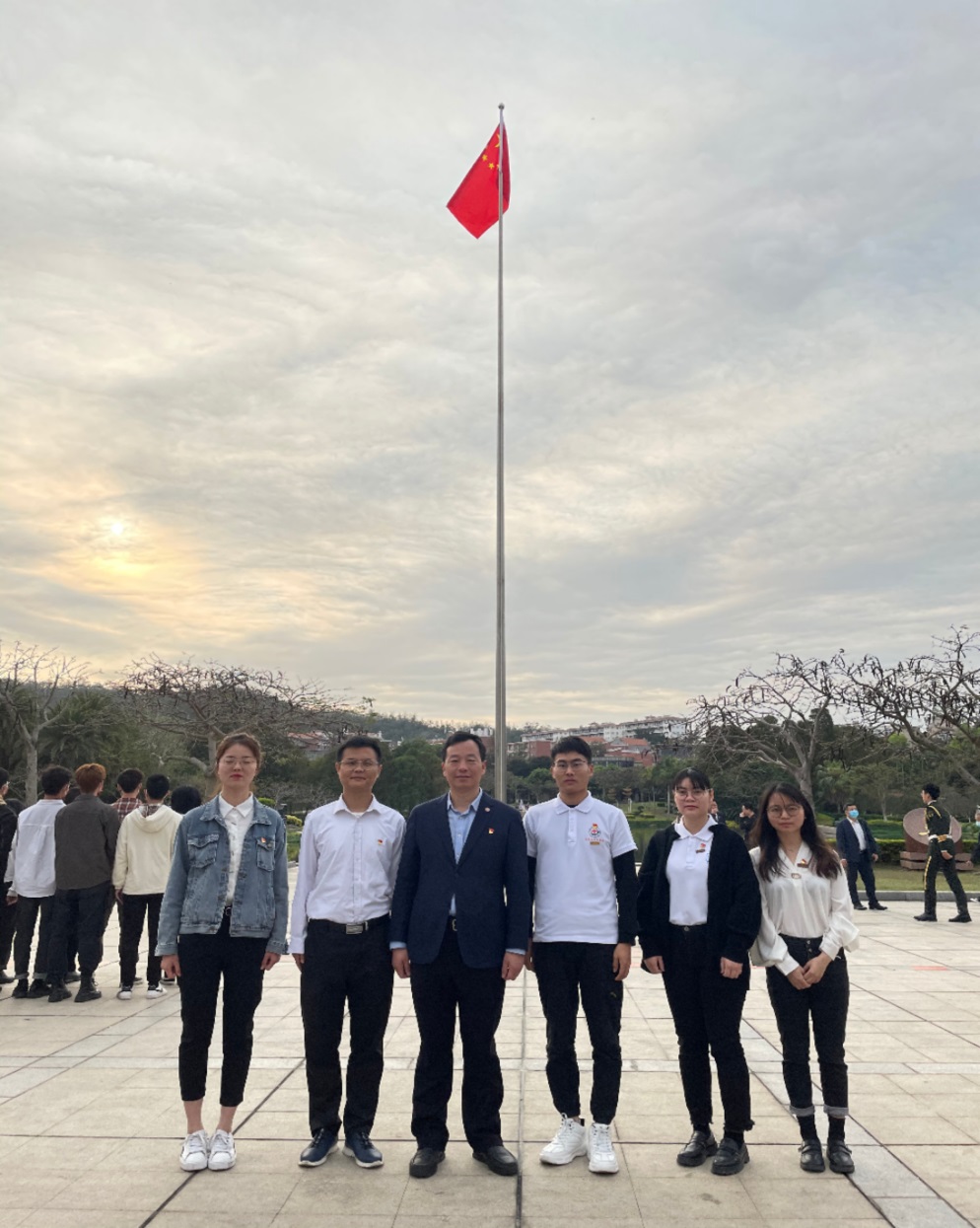 4月6日上午7时,厦门大学新百年的第一面国旗在嘉庚广场冉冉升起,蔡虎堂老师带领严春飞等五位同学参加了升旗仪式。师生们齐聚广场,奏唱国歌,进一步增强了内心强烈的自豪感和使命感。