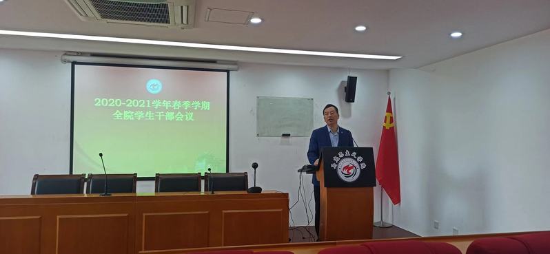 3月17日上午,我院在囊萤楼313报告厅召开2020-2021学年春季学期全院学生干部会议。学院党委副书记杨建中和全院学生干部参加了本次会议。会议由团委书记蔡虎堂主持。
