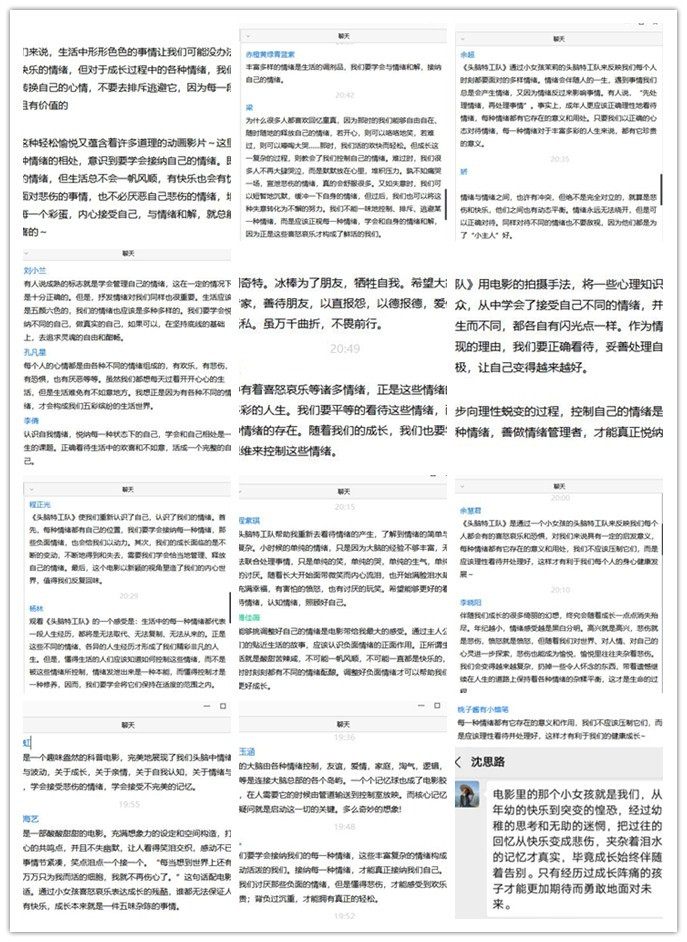 观影过程中,同学们纷纷发表自己的感受。此次活动带领同学们感受和了解情绪,学会接纳负面情绪和不完美,增强了同学们对心理知识的认识,丰富了同学们疫情期间的居家生活。