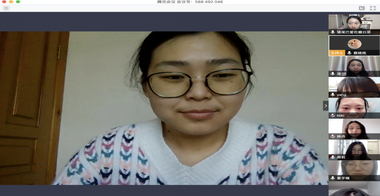 本次主题团课主要围绕“新冠肺炎疫情暴发”、“身边的你我他”和“未来如何做”三个方面展开。首先,蔡晓雨对此次疫情的暴发情况和政府的应对措施做了简要梳理,为支部成员分享了疫情期间所涌现出的英雄人物和感人事件。其次,蔡晓雨就本支部成员在疫情期间所做的努力,进行简要总结。疫情期间,2017级硕士生团支部成员不仅纷纷自愿捐款,支持抗疫工作,还通过“贴封条”、体温检测等志愿工作亲身参与防疫。最后,蔡晓雨带领支部成员学习了党中央近期重大会议精神和习近平总书记的系列重要讲话,并结合习近平总书记对广大青年所提出的使命担当,共同探讨在之后的战“疫”之中,如何更进一步履行当代青年的时代使命而有所作为。