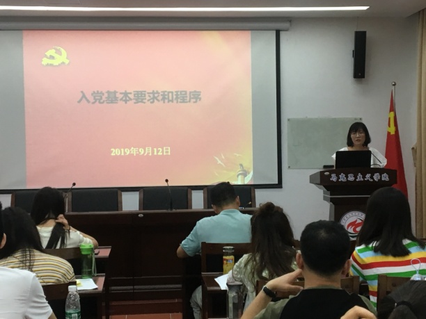首先,学院江春萍老师向同学们介绍了入党的基本要求和程序,主要介绍了党员发展的有关规定、申请入党的基本条件、发展党员的工作流程、给新生的建议等四个方面。同学们受益匪浅,纷纷表示要积极向党组织靠拢。