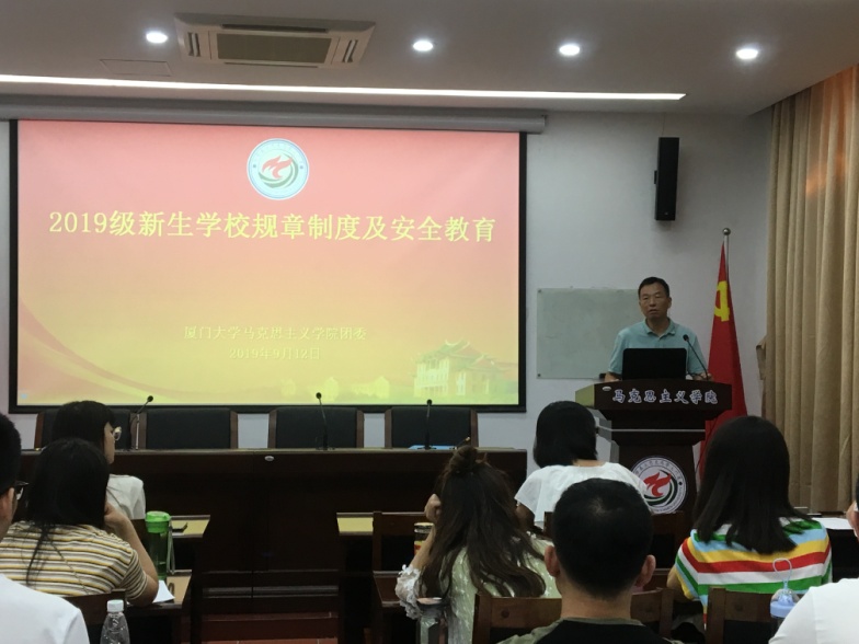 9月12日下午,学院团委在囊萤楼216报告厅召开2019级新生校院规章制度及安全教育大会,2019级全体硕士博士新生参加了此次大会。会议由院团委书记蔡虎堂老师主持。