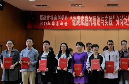 2017年11月18日,福建省社会科学界2017年学术年会“健康家庭的理论与实践”分论坛暨2017年省妇女理论研究会年会在福建省妇女干部学校成功举办,我院2015级硕士研究生曽晞参加了此次会议,并获得大会优秀论文三等奖。