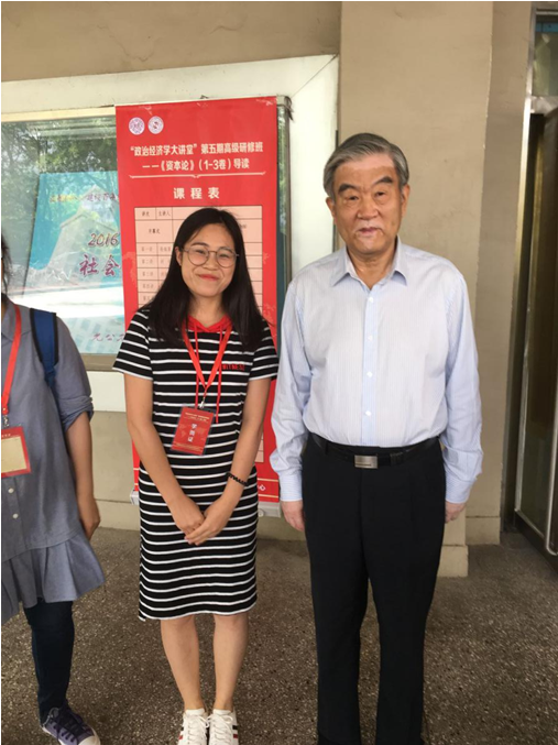 2017年7月8号,由中国特色社会主义经济建设协同创新中心、南开大学经济学院、中国人民大学经济学院、南开大学政治经济学研究中心、全国中国特色社会主义政治经济学研究中心联合主办的“政治经济学大讲堂”第五期--“ 《资本论》(1-3卷)导读”高级研修班在天津南开大学开班。我院2016级硕士研究生赵华美参加了此次研修班。