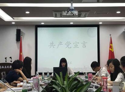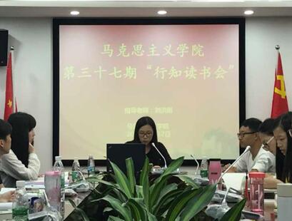 4月17日上午,我院第三十七期“行知读书会”在囊萤楼302举行。本次读书会的指导书目为《共产党宣言》,由我院优秀青年教师刘洪刚老师担任指导老师,主讲人为2016级学生张亚星和葛开勇。2016级全体同学参加了此次读书会。