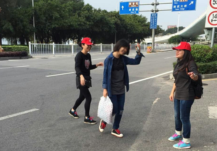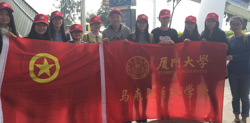 2015年12月12日,厦门大学马克思主义学院2015级研究生团支部11名志愿者,头戴小红帽,准时来到厦大白城开展文明交通劝导志愿者活动。