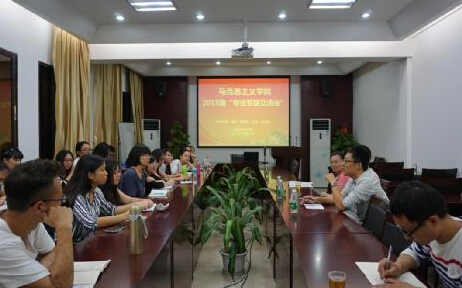 2015年11月19日,晚上19:00马克思主义学院2015级“专业答疑交流会”在成智二110会议室召开。会议由2015级研究生娄澜主持,马克思主义基本原理概论教研室李猛老师和肖斌老师、思想道德修养与法律基础教研室苗瑞丹老师、毛泽东思想和中国特色社会主义理论体系概论教研室刘洪刚老师、2015级研究生及部分研二学生出席本次交流会。