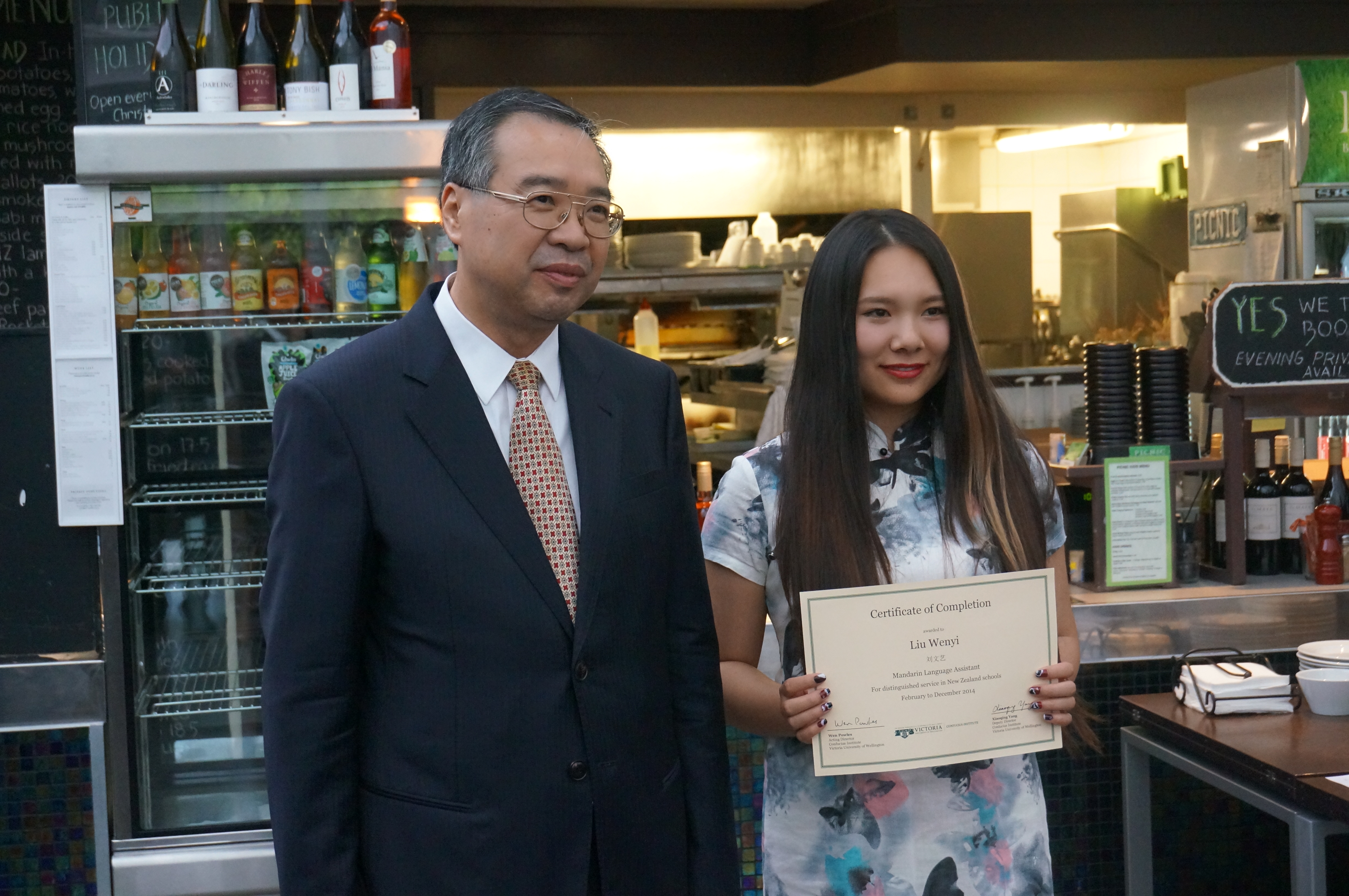回国之前,赴新西兰志愿者在惠灵顿进行了欢送晚会,晚会上厦门市市长刘可清为刘文艺颁发了结业证书。