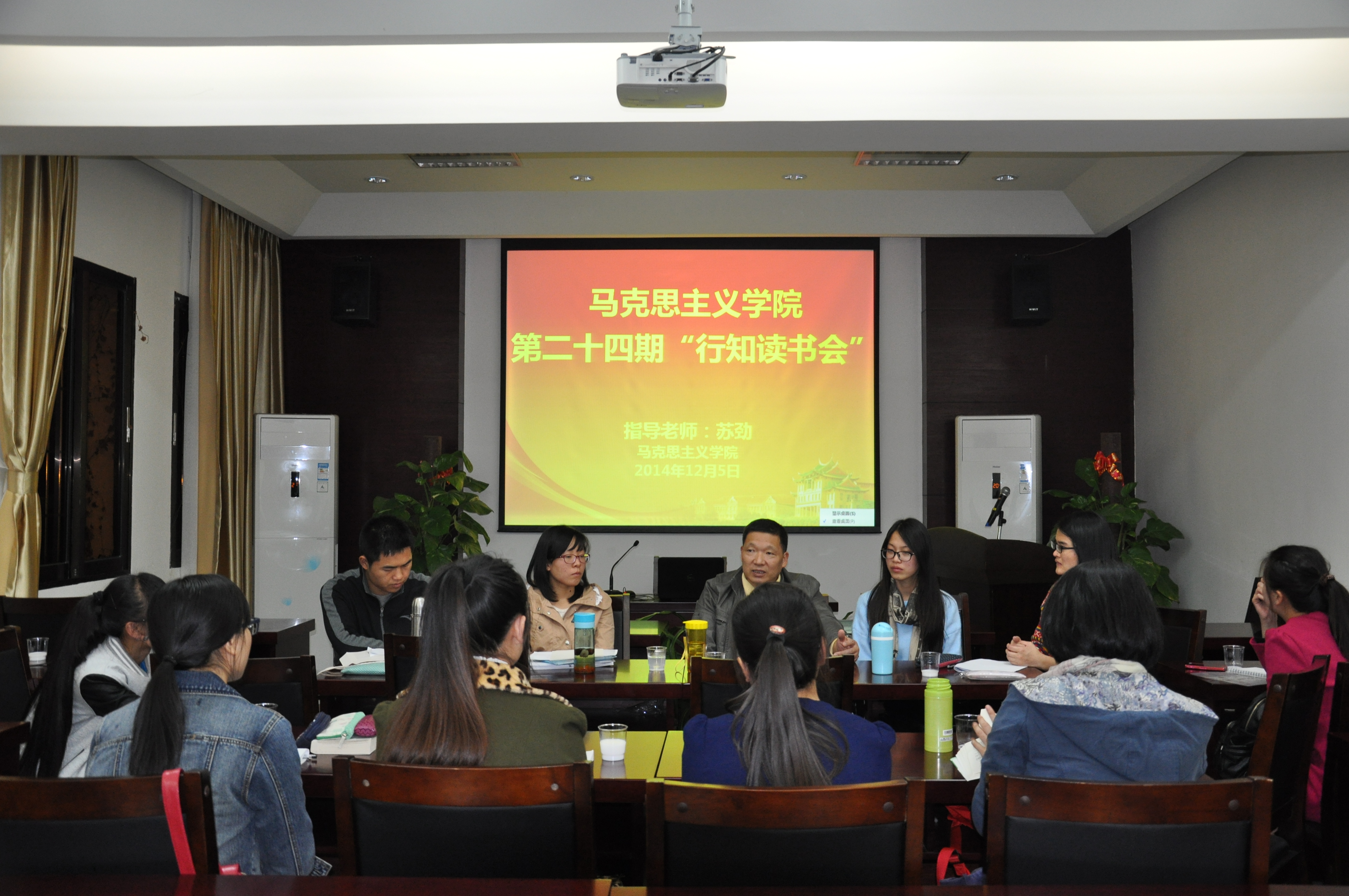 2014年12月5日晚,马克思主义学院第二十四期“行知”读书会在成智二110会议室举行。本期读书会的阅读书目是马克思的经典著作《资本论》第一卷,指导老师为学院苏劲教授。