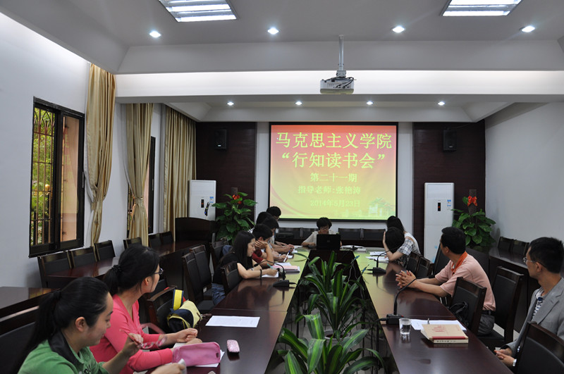 2014年5月23日,马克思主义学院第二十一期“行知”读书会在学院110会议室举行。本期读书会的主题是中国力量及邓小平的制度思维,指导老师为张艳涛副教授。学院蔡虎堂老师,研二、研一的学生参加了此次读书会。