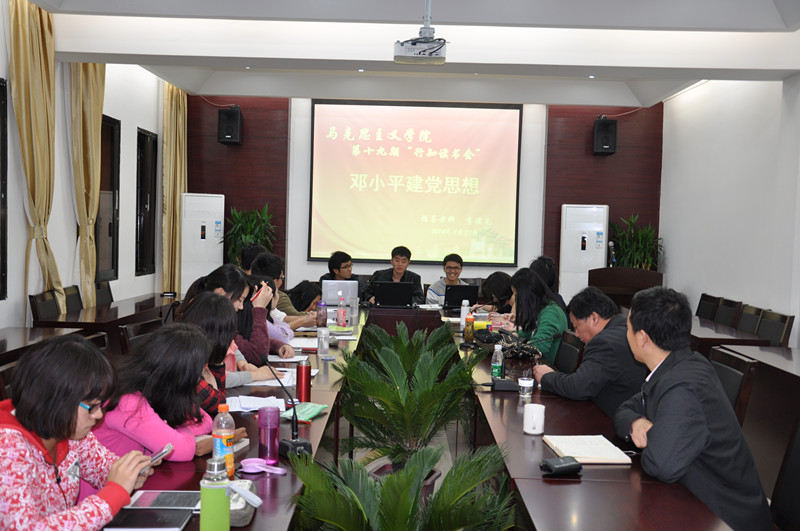 3月25日晚,马克思主义学院第19期“行知”读书会在成智二110会议室举行。此次读书会主题为“邓小平的建党思想”,邀请中共党史专业李德元副教授做指导老师,中共党史专业2013级研究生杨之涵、田利和罗龙强同学担任主讲人。学院蔡虎堂老师及研究生一、二年级全体同学参加了本期读书会。