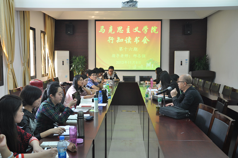 11月8日上午,我院第十六期行知读书会在成智二110会议室举办,研一和研二的同学参加了本次读书会。本期读书会邀请了党史专业的邱志强副教授作为指导老师,选读的书目是中央文献出版社最新出版的《说不尽的毛泽东》。