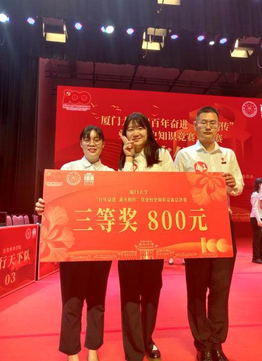 5月21日晚,厦门大学“百年奋进 薪火相传”党史校史知识竞赛总决赛在建南大会堂隆重举行。我院队员相互配合,齐心协力,最终获得三等奖的佳绩,学院被评为本次活动的“优秀组织奖”。