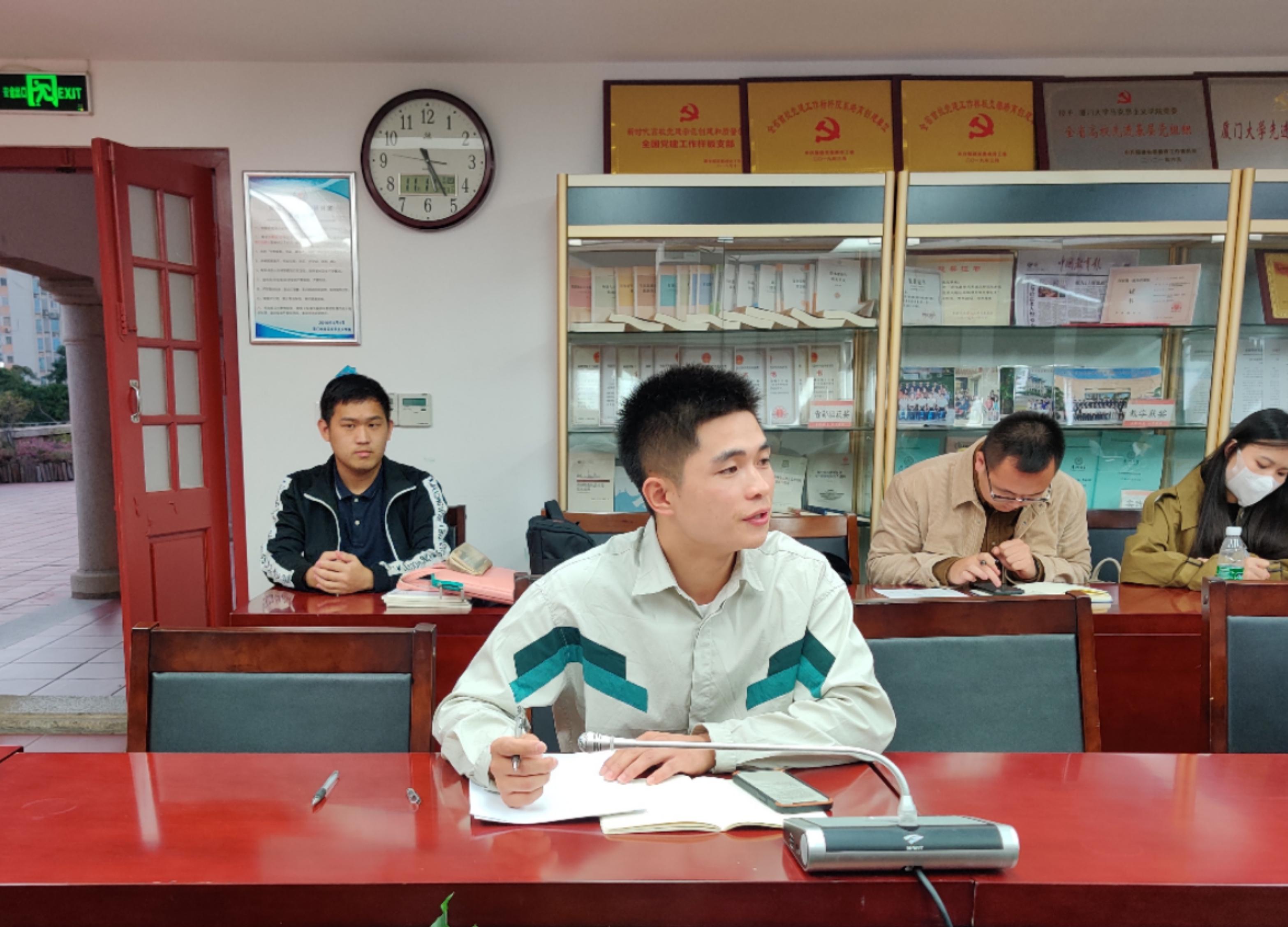 为促进新老成员间的互动交流,帮助新成员快速明确工作职责,增强研究生会的凝聚力和向心力。11月11日下午,厦门大学马克思主义学院2021-2022学年秋季学期研究生会全体大会在囊萤楼302举行,学院党委副书记杨建中老师、党政辅导员毛敏倩老师和研究生会全体成员出席会议,研究生会执行主席连传钊主持。