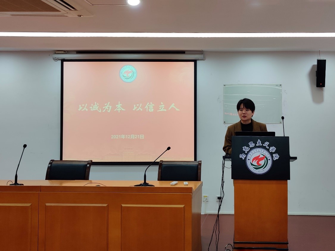 12月21日下午,我院在囊萤楼313报告厅召开学生诚信教育暨加强疫情防控工作会议。学院党委副书记杨建中、党政辅导员毛敏倩、21级全体硕士研究生和20级硕士生学生干部参加此次会议。