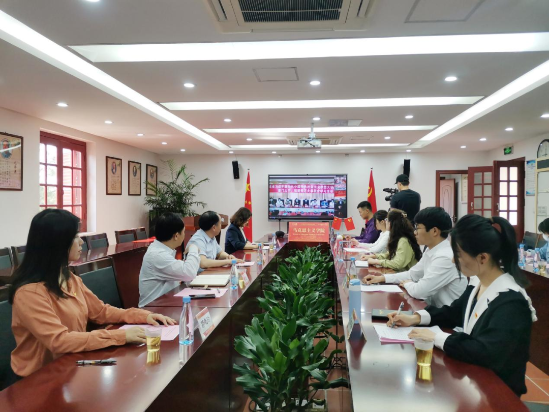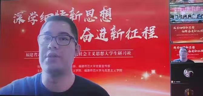 为推动广大青年学子学思践悟习近平新时代中国特色社会主义思想,增强建功新时代的本领和能力,4月8日,福建省习近平新时代中国特色社会主义思想大学生研习社(厦门大学、福建师范大学)联合开展学习活动。本次联学活动以线上线下方式举行,厦门大学、福建师范大学分别设立主会场,厦门大学党委宣传部部长、社科处处长高和荣教授,福建师范大学党委常委、宣传部部长黄茂兴教授,厦门大学马克思主义学院党委书记石红梅教授,福建师范大学物理系1989级校友、福建师范大学马克思主义学院党委书记张爱民研究员、厦门大学经济系1983级校友张宏樑先生,厦门大学马克思主义学院党委副书记杨建中老师,两校研习社全体成员共150余人参加了本次活动。活动由福建师范大学马克思主义学院党委副书记叶龙祥主持。