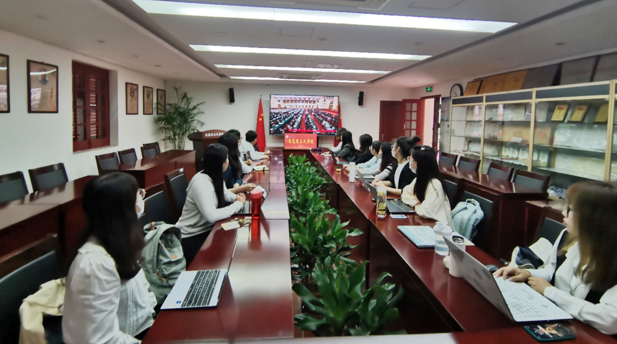 5月10日上午,庆祝中国共产主义青年团成立100周年大会在北京人民大会堂隆重举行,中共中央总书记、国家主席、中央军委主席习近平出席大会并发表重要讲话。马克思主义学院党委书记石红梅,党委副书记杨建中,团委书记郭晓玲,学生党员、团员代表在囊萤楼302会议室集中收看庆祝大会,深刻学习领会习近平总书记重要讲话精神,并展开热烈讨论。