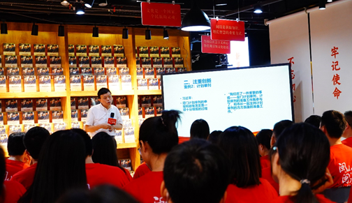 7月13日上午,由省委宣传部、省委教育工委、海峡出版发行集团联合组织,厦门大学牵头开展,华侨大学、集美大学等高校共同参与的“追寻习近平总书记的足迹——闽山闽水物华新”全省大学生暑期社会实践队(南线)前往厦门中山路新华书店,听取《习近平在厦门工作期间的重要理念和重大实践》主题思政课,厦门市委宣传部原副部长、市委党校原常务副校长、一级巡视员林朝晖围绕“执政为民”的核心理念,从注重调研、注重战略、注重创新、注重三农、注重对台、注重生态、注重修身六个方面回顾了习近平总书记在厦门经济特区工作期间的重要理念和重大实践。
