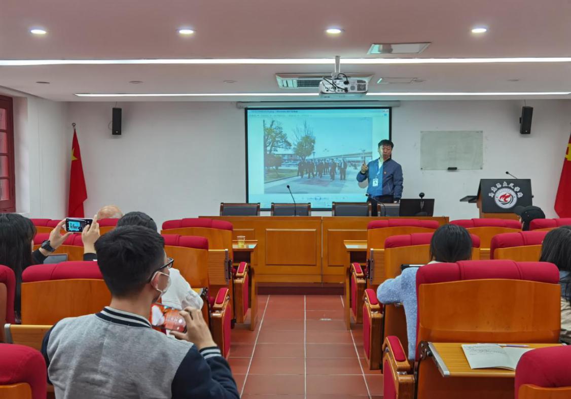 林建斌科长则进行技能业务训练,分享各层级个类型团队接待讲解礼仪方面的成功经验,帮助同学们练好讲解的基本功。林老师认为,讲解是一门艺术,讲解员的精神面貌不仅是场馆的名片更是一个学校,一座城市的名片。他以理论穿插实例开展讲解实操演示和待人接物情景还原解析为内容,穿插互动交流和示范讲解,结合亲身经历和丰富的图片资料从自我介绍礼仪、目光礼仪、站姿礼仪、握手礼仪、站位礼仪、形体礼仪、送别礼仪等方面给大家进行了培训。