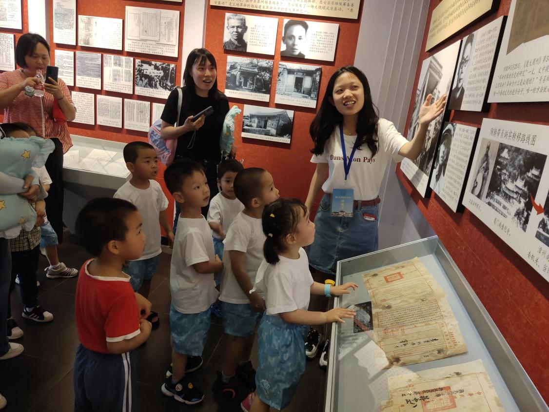 根据小朋友年龄较小,对语言文字理解能力较弱的特点,讲解员选择了以浅显而生动的语言,以厦门大学革命史发展历程为序,展开党史宣讲,串联起一个个红色故事,满足小朋友们旺盛的好奇心,同时有效地展开了爱国主义教育。讲解得到了小朋友们与家长们积极的回应和互动,当讲到九一八事变爆发后,厦大师生参与到抗日战争中时,小朋友们异口同声喊出:“赶跑日本帝国主义坏人!“讲解结束以后,厦大幼儿园的带队负责人纪婷婷老师总结表示:“这次活动因为孩子小,工作很有难度,多亏两位讲解员的灵活应变,此次针对幼儿的党史教育工作才得以如此顺利完成!“
