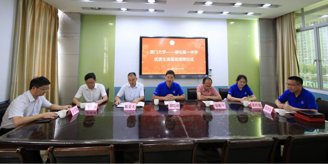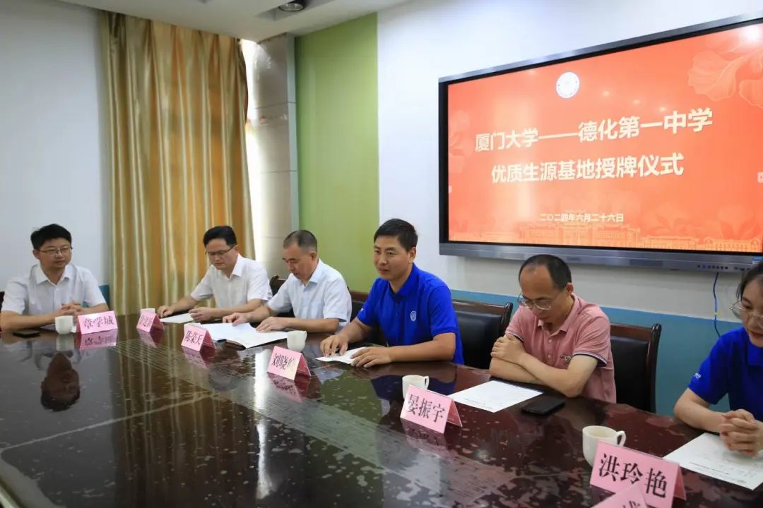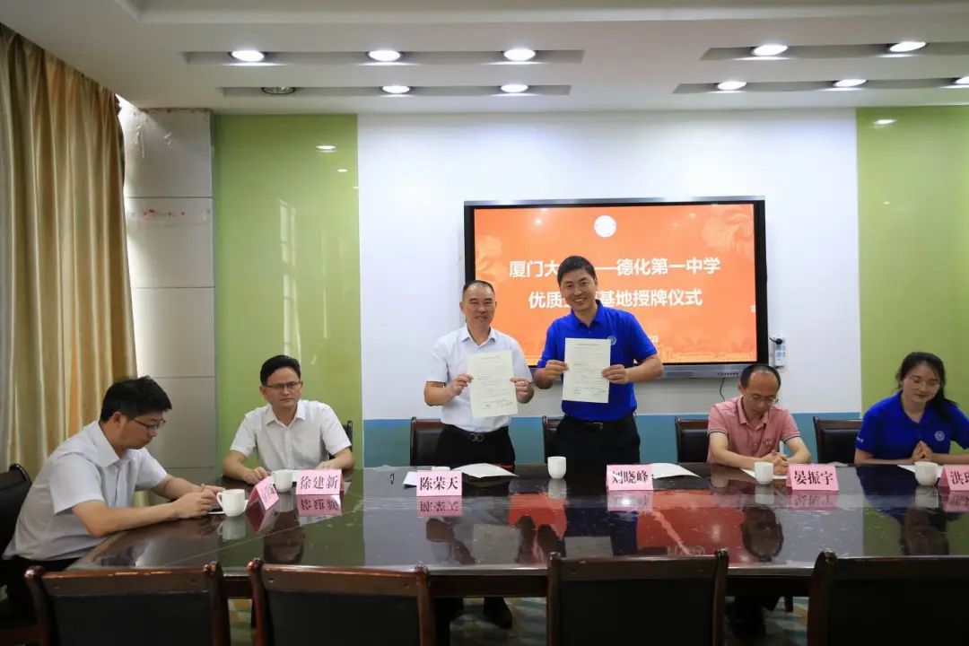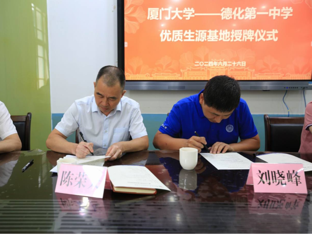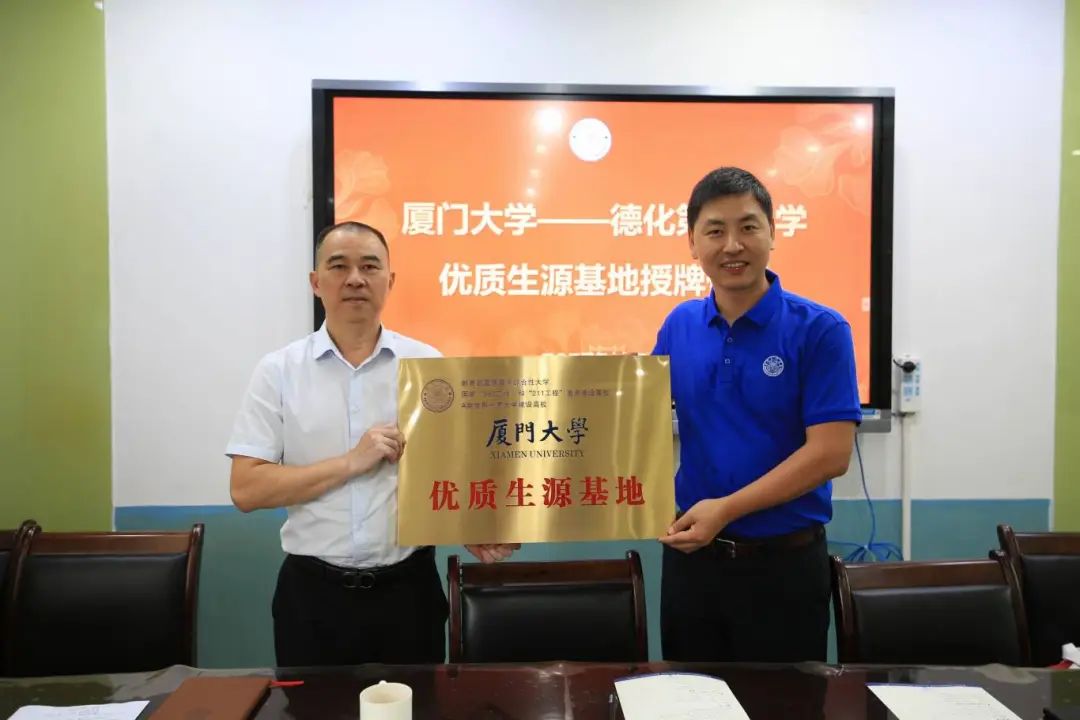 刘晓峰副书记代表厦门大学向德化一中授“优质生源基地”牌,陈荣天校长代表学校接牌。