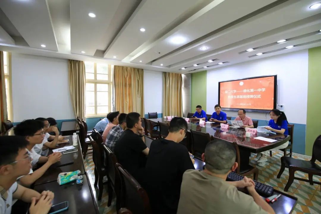 陈荣天校长简要交流了学校的办学历史和办学成效,并介绍了德化一中与厦门大学长久以来具有深厚渊源的良好互动,他代表学校对厦门大学一直以来对德化一中的关心和支持表示衷心的感谢!陈校长表示,学校将以此次厦门大学授予德化一中“优质生源基地”称号为契机,充分依托厦门大学的教育资源,在人才培养、教学研究、文化交流等方面开展更加深入的合作,实现中学教育与大学教育的良性互动,为学生的发展搭建更广阔的平台。
