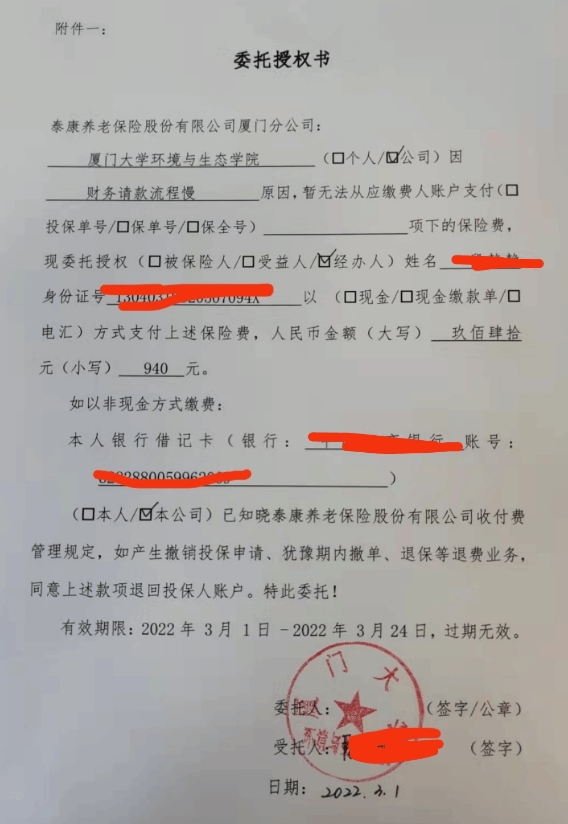 (4)授权书第1页和第2页均要盖章,到囊萤楼309找王老师盖院章,拍照和原件都发给保险公司对接经理