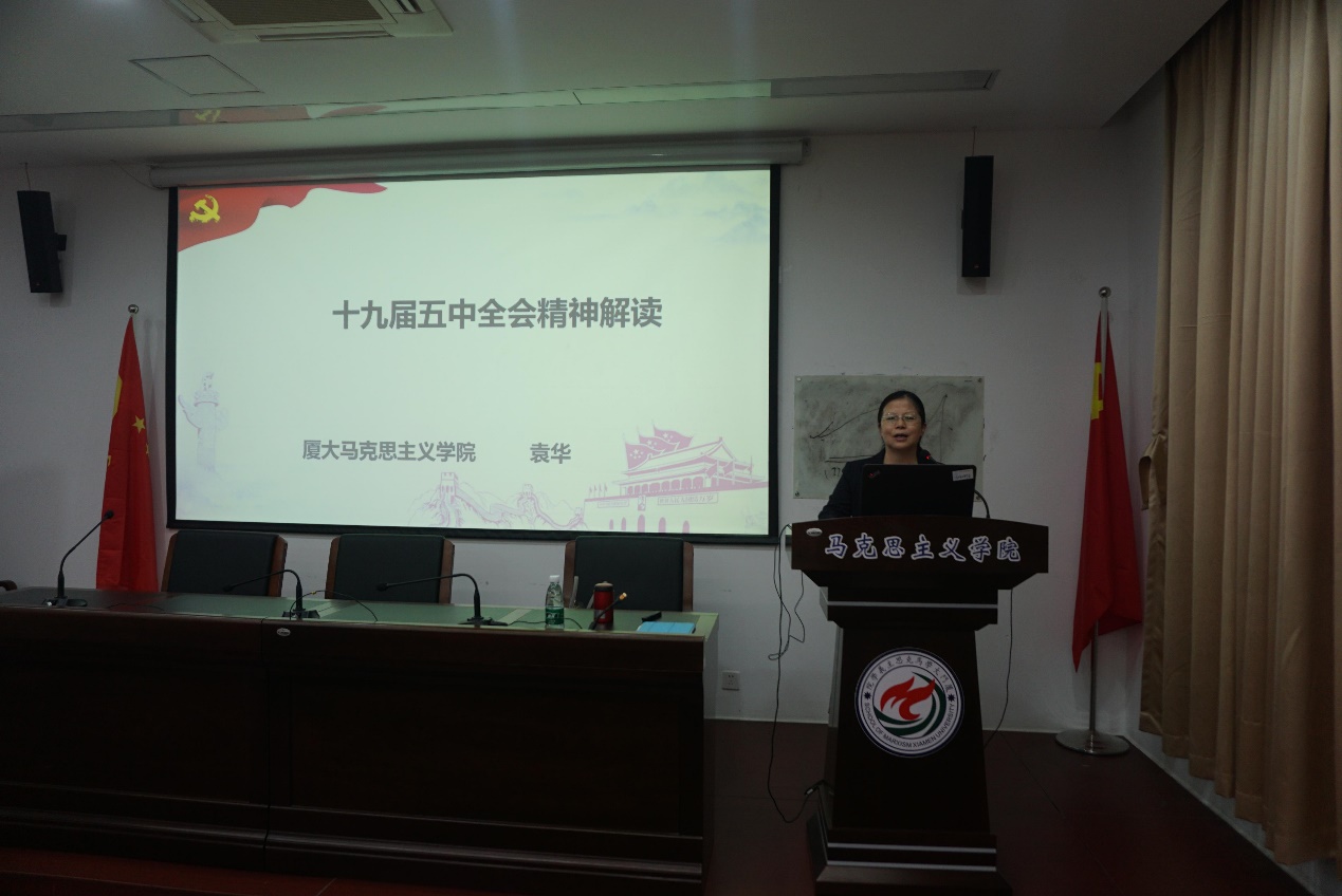 为引领学生党员深入学习贯彻党的十九届五中全会精神,2020年12月4日晚,学院在囊萤楼216会议室开展了以“十九届五中全会精神解读报告”为主题的学习讲座。讲座邀请马克思主义学院袁华副教授作主讲。讲座由学院党委书记侯利标主持,学生党员骨干及硕博新生党员参加学习。