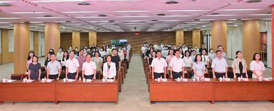 开学典礼在齐唱厦门大学校校歌中圆满结束,全体人员在科艺中心前合影留念。