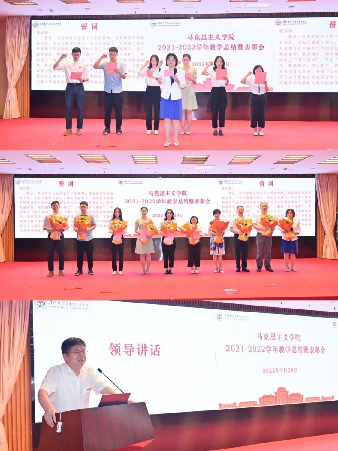 为推进马克思主义学院教学工作,进一步提升教学育人效果,9月28日上午,马克思主义学院于科艺中心多功能区隆重举行2021-2022学年教学总结暨表彰会。厦门大学党委副书记、马克思主义学院院长徐进功,校党委党校副校长张艳涛,原校党委党校副校长苏劲,学院退休教师何其颖、学院党政领导班子及教师出席总结表彰会。会议由学院教学改革研究中心副主任庄三红主持。