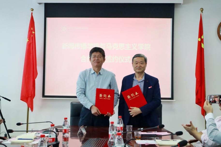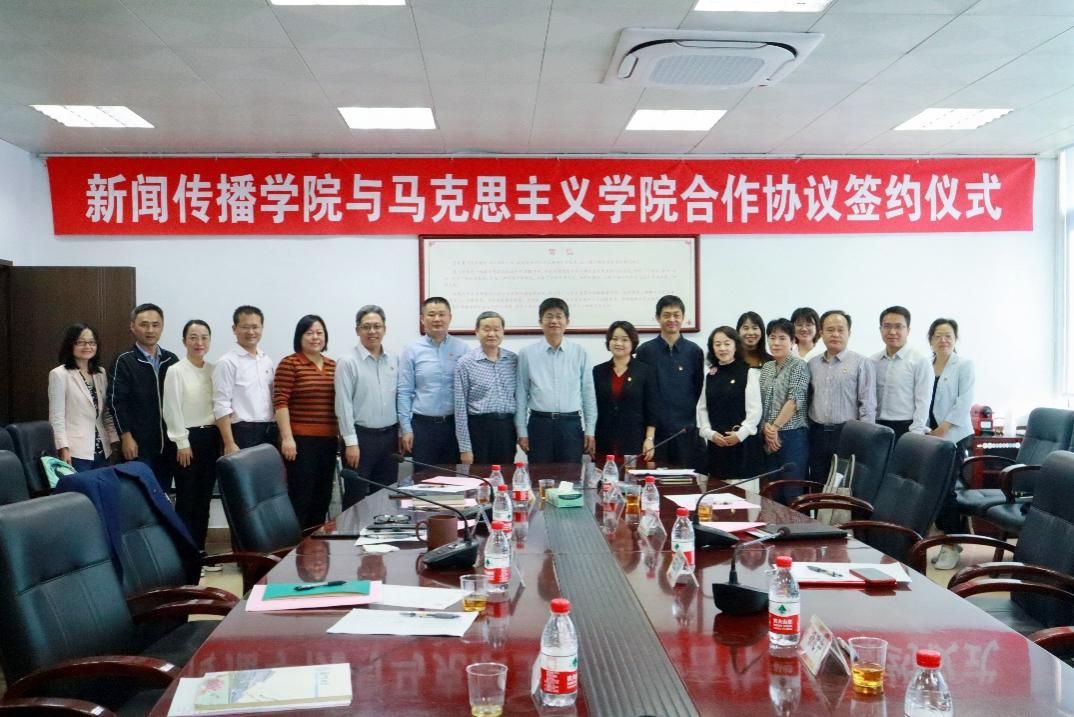 为学习贯彻党的二十大精神,推进“新文科”建设,推动高等教育内涵式高质量发展,10月19日上午,新闻传播学院与马克思主义学院于新闻楼411会议室举行合作协议签约仪式。