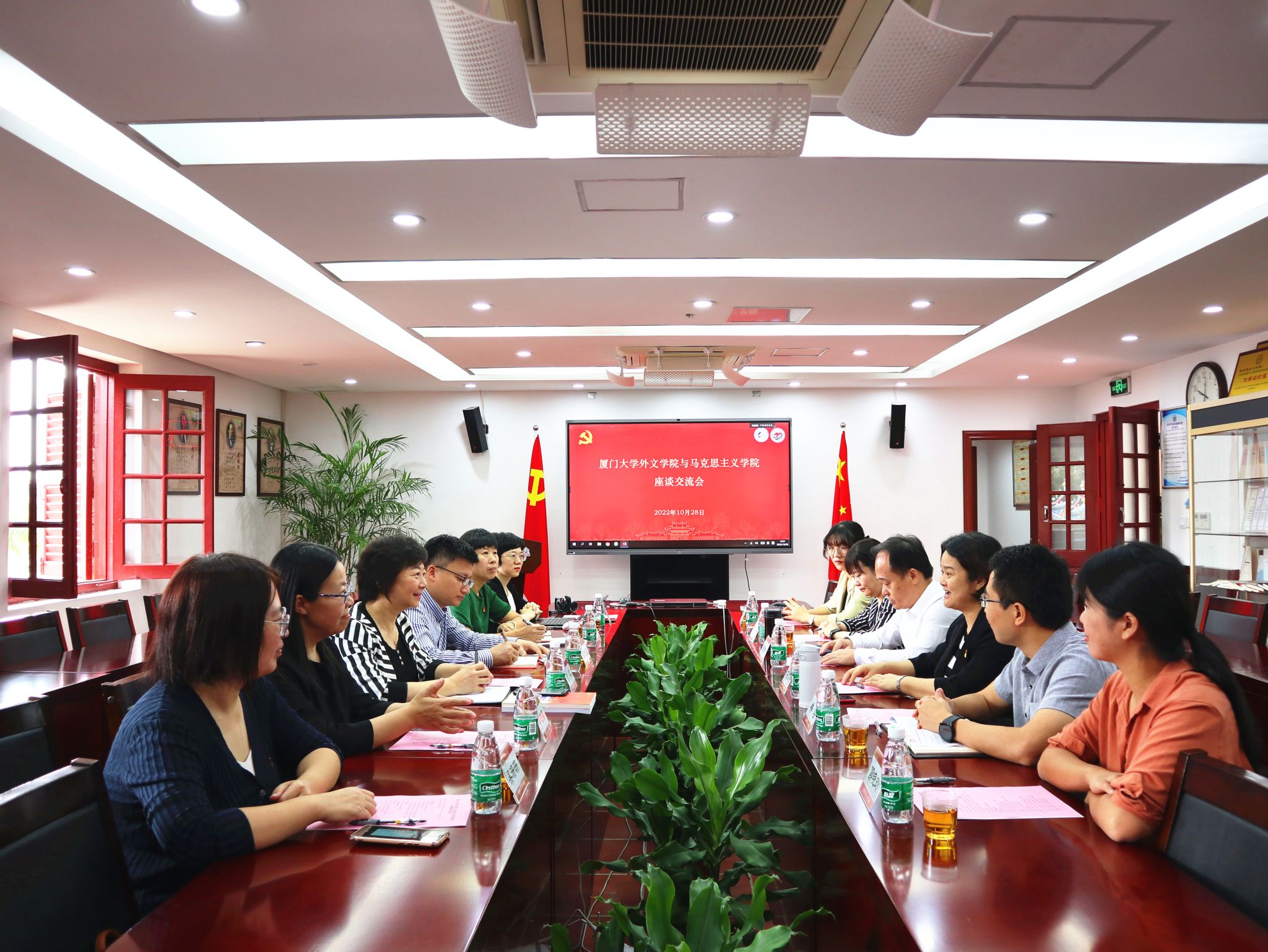 为深入学习贯彻党的二十大精神,落实新时代党的建设总要求,2022年10月28日上午,马克思主义学院与外文学院在囊萤楼302会议室开展党建交流座谈会,共同探索新时代高校党建与事业深度融合新路径,探讨两院合作共建可行性。