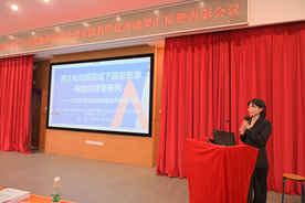 在学生代表展示环节,艺术学院2020级李丽娜进行了微视频《换了人间》的展播;公共事务学院2019级张玉梅作了题为《跨文化传播视域下国家形象构建的转变研究——以北京夏奥会和冬奥会开幕式伟力》的优秀成果汇报;马克思主义学院2021级研究生马璐尧、新闻传播学院2020级何若溪在线上共同完成了题为《多维度铸牢中华民族共同体意识》的汇报。