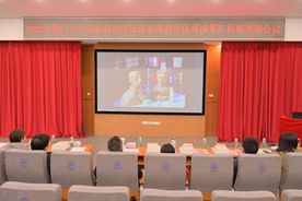 12月21日下午,2022年厦门大学思想政治理论课实践教学优秀成果汇报暨表彰会在化学报告厅召开,会议采用线上线下方式同步进行。副校长周大旺,校党委副书记徐进功,组织部、党校、宣传部、学生工作部、人事处、研究生院、社科处、校团委、财务处领导,各学院党委副书记,全体思政课教师、辅导员及参加思政课实践教学的学生代表等出席本次会议。会议由马克思主义学院党委书记石红梅主持。